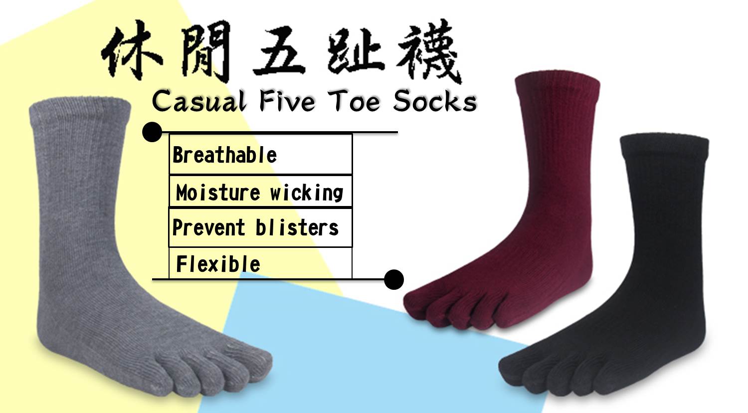 五趾襪對腳部有什麼好處?如前面所提,五趾襪不僅僅是普通襪子,它們的設計使之與傳統襪子有所不同。最明顯的區別是五趾襪每個腳趾都有獨立的隔間,而普通襪子則將所有腳趾包覆於同個空間中。五趾襪使腳趾自然排列,讓腳趾能自然活動和彎曲。此外,比起五趾襪,傳統襪子較易吸收汗水,使腳部潮濕和不適。過多濕氣加上腳趾之間的磨擦會導致皮膚摩擦,最終產生水泡和擦傷。