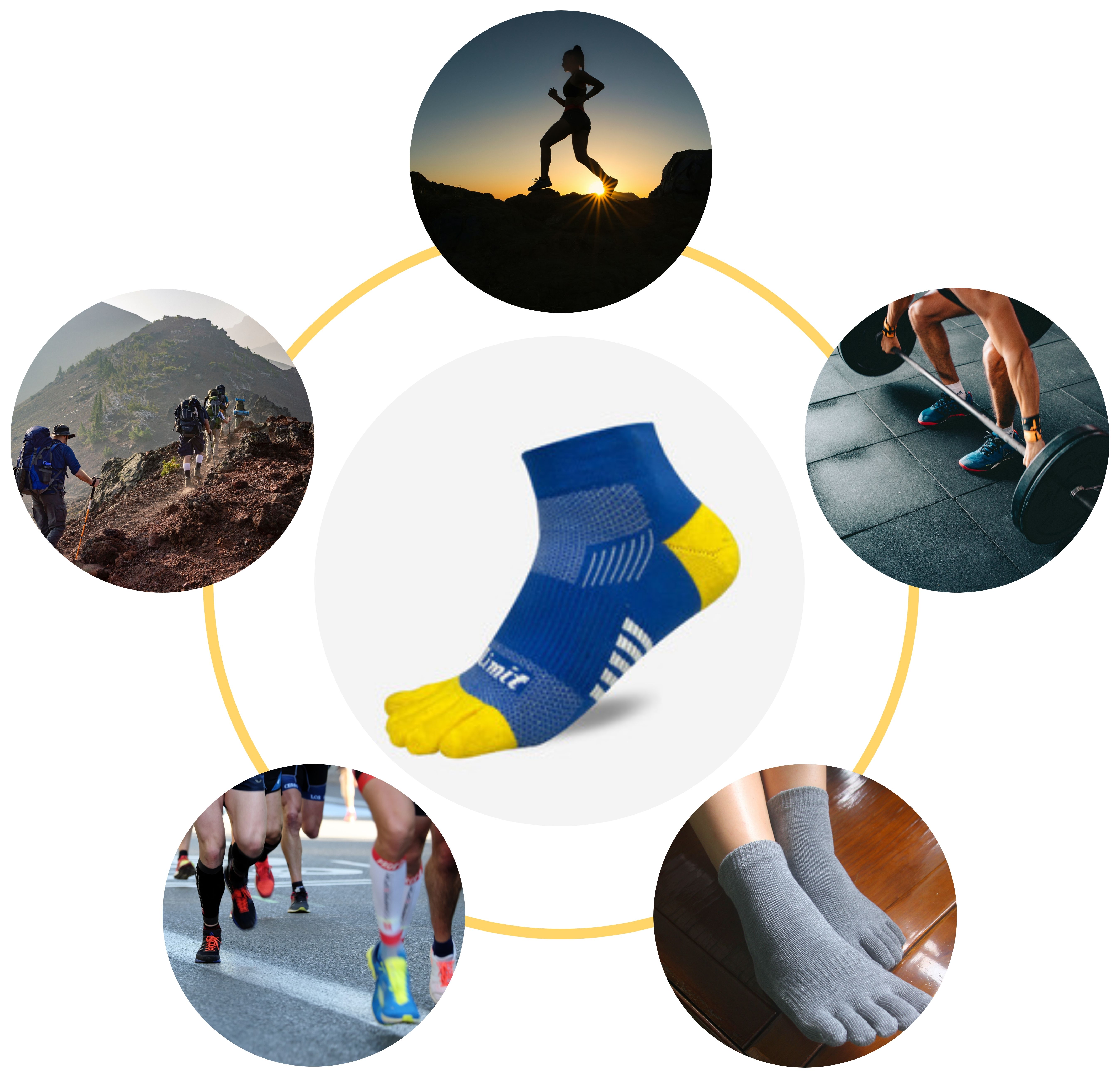 五指訓練襪子為了降低襪底跟鞋墊中間的滑動、減少腳與鞋子空間的碰撞,襪底則有止滑膠的設計,能強化腳踝包覆及腳底止滑抓地,提供雙腳最佳的穩定性,為一雙性能兼具舒適的功能型五指襪,也十分適合運動、訓練時穿著,因此穿著此雙襪子能讓運動表現更加有效率,減少腳部滑動和扭曲的風險,有助於避免腳部受傷。